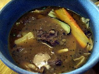 開店当初、あまりの不評に封印されたスープカレーが復活。地雷覚悟で行ったが、やや油が多いながら無難にまとめた感じ。油の多さから印象としてはガナパティーに近いか。一定レベルはクリアしている。