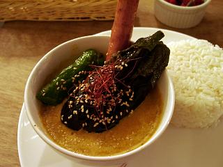 enoughのような甘〜いタイカレー風。なかなかに濃厚でフルーティー。味自体は良い。ただ、スープの器が超ミニ。スープはトロミもあるので、そのままライスにかけていても良いと思うのだが、ここの店はこのスタイルで色々なスープ料理を出しているそうだ。