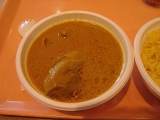 スープにしてしまったが・・・ナンとフツーのカレーにしておけばよかった。先割れスプーンで食べるようになっているが、これでどうやってスープをすくえというのか?三分の一はこぼれちゃうんだよね。ライス乗っけてると、ほとんどスープがすくえない感じ。しかも、肉の骨離れが良くないチキン・・・この器では食べにくいことこの上なし。ホント苦戦したよ。店の人は、実際このメニューを食べたことあるんだろうか?万人向けのマイルドなカレーなんだけど、食べにくさは特筆モノ。もうこれは食べないだろうなぁ。