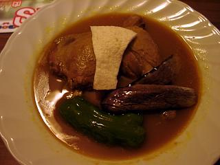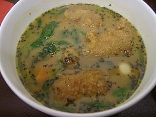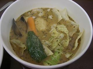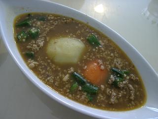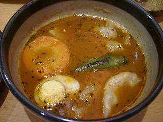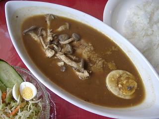 何かすごく変わったカレー。ベースはあっさりさらさらタイプ。微かな酸味と独特の風味で、どこかの店に似ているということもない。見てくれはナンだけど、実は結構美味しくいただけた。辛さにはサンバルソースを使っているんじゃないかな?面白いカレーと思う。