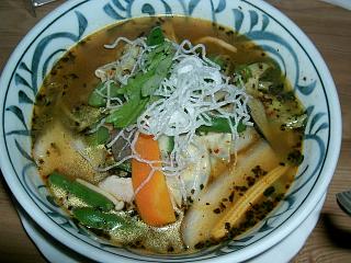 久々に行ったら、ウダン(エビ天)が消えて、ヤサイが加わってた。肉系具が無くても、相変わらずのボリュームで満腹だぁ。辛さは以前と比べると格段にupし、2番でイエローのそれと同等。個人的にはこのくらいが丁度いいや。