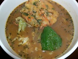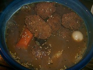 直営21店・FC9店を持つ?螢好僖ぅ好蹇璽鼻淵織す颯蕁璽瓮鵑罵?名らしい)がプロデュースしたスープカレー専門店。2人の店員さんがインド系の方だったので、インド料理屋によくある失敗スープカレーかと思ったら、これが意外にも和風。具もかつおぶし・大根・油揚げ等々。札幌のスープカレーをよく研究したのだと思う。逆にフツーのカレーのつもりでここに来たら「何じゃコリャ?」の世界だろう。ナンとライスが両方付いてるし、この価格なら十分及第点。ただ、やっぱこのスープじゃナンは合わない。ナン自体は美味しいのでスープに浸さずに別々にいただくのが吉。