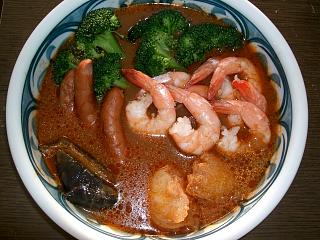 今日は某店に対抗して「ぷりぷり海老」のウインナートッピング付き!・・・うーん、満足、満足。