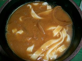 味噌カツから2時間半後、きしめんをいただいた(爆) そこいらの駅にあるうどん&そば屋でフツーに食べられるカレーうどんだね。麺が平べったいだけだ。価格が価格だけに可も無く不可も無し。一応カレーにしたので番外編ではないということで。