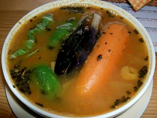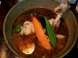 「チリトマトスープ」と名付けられたスープは、ジャンダラリンのスープにトマトを加えたって感じ。なかなかウマー!ラーメン系スープカレーが好きな人には合うんじゃないかな。具ではチキンが少々肉の骨離れが悪く食べにくかったが、あとは無難な仕上がり。でも、辛さが一番上がるごとに価格が10円ずつ上がるのはどうだろうね?辛くして食べたい人には、そこがネックとなりそう。中辛という位置付けの2番でも一杯1000円超となってしまうのはイタイ。あとは場所が問題・・・このくらいのレベルの店が、行き易いところに出来て欲しいねぇ。