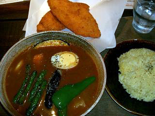 久しぶりにオーソドックスなチキンを食したが、ここのスープカレーにはポークの方が合うかな?または超ボリュームのフィッシュフライがオススメ。チキンも悪い訳じゃないんだけど、スープに負けてる感じ・・・つーか、印象に残らないんだよね。
