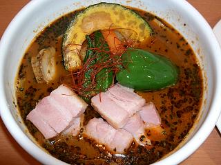 開店時に食べて以来のイエロースープだが、変なハーブの香りは無く、胡椒が効いたラーメンライクなあっさり系で非常に美味しい。このスープを使ったラーメンのリクエストも多いらしいがうなづけるなぁ。大地の恵み赤スープと甲乙つけ難いハイレベル。大満足でござる。