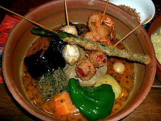 チキンをメーン具に、イモ・カボチャ・アスパラ・キノコを加えてみた。割と簡単にできるし、この価格なら文句無いね。