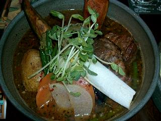 Asian Bar RAMAI 札幌本店 札幌市豊平区月寒東1条17丁目5-48 スープ・サピ・プダス・10番・スープ大盛 780円 ★★★★★ アメリカ牛解禁以来敬遠してて超久々のサピ。肉の量は増えてなかったから、多分アメ牛は使ってないのだろう。ただ、肉が減って肉汁が足りないのか、柑橘系の酸味が立ち過ぎて随分あっさりな味に振れちゃってたな。単なるブレかもしれないけどね。 今日と明日はメール会員は200円引きでいただけるけど、普段はスープカレーより100円高いのだ。他のメニューと比べちゃうと正直お得感に欠けるねぇ。