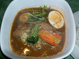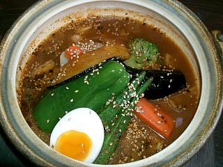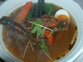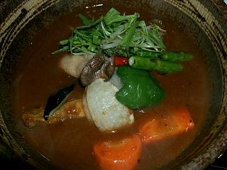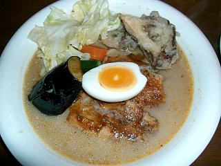創作居酒屋兼そば屋。ん、メニューにはスープカレーが無いけど・・・聞いてみたらちゃんとあった。出てきたのは「カレーそばwithスープカレーの具、ただしそばじゃなくライスバージョン」。しかもライスが激盛りだ。ま、たまにはこんなのも良いなと思いつつ、フツーにそばでいただいた方が良かったかもと感じた(笑)