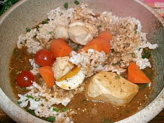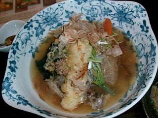 一見具が少なそうだが、スープの中には「これでもか!」とばかりに色んな具が。おかげで十分あるように見えるスープが実は少ないのが難点。濃厚系のラーメンを思わせるスープは、このまま麺を入れても全く違和感無い感じ。それだけにメーン具のとろとろチャーシューがまた合うんだよね。ライス小で20円引きでも 1000円オーバーなのがちと残念。
