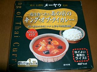 「メーヤウ」のタイカレー第2弾。名前がスゴイがトレイまで金色(笑) 具は、鶏肉・じゃがいも・茄子がゴロゴロ。美味しいんだけど、他のシリーズのように安売りしてほしいねぇ。