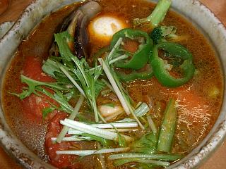 「復活」と黒板に書いてあったこのメニューにした。ここのスープは、辛さを上げるとターメリックの渋みが出てくるし、下げると酸味が強すぎるという、ちょいとクセのあるタイプなんだけど、納豆が加わることによりそれを感じなくなる。また納豆自体のクセも消えてしまうようで、実にバランスの取れた完成度の高い一杯となっている。豆腐が丸ごと一丁使われていたりして、見かけよりずっとボリュームがあるのだ。