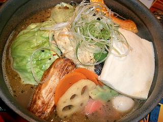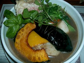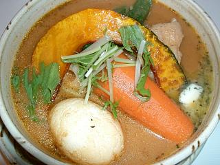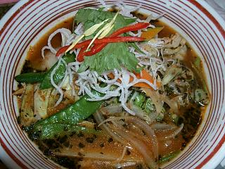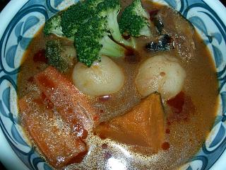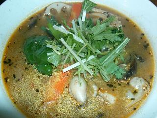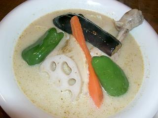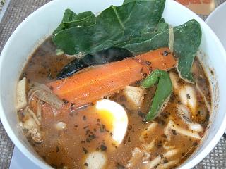 スープはココナッツミルクが効いているのに割とスッキリした味わい・・・つーか、上品過ぎて物足りない感じ(笑) 具はまんま典型的スープカレーのそれだが、特に野菜とタイ風スープの相性がイマイチなので、トータルバランスではノーマル(薬膳)スープの方がずっと上かしら。