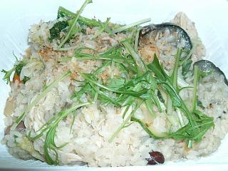 持ち帰りメニュー。間違いなくリゾットなのに、味はタイカレーだった。個人的にはもう一段辛くても良かったけど、フツーの人たちには辛い方なのかも。上に乗ってるのがパクチーじゃなくて水菜だったのも良かったなぁ。ちょい高めだけどボリュームは結構あるよ。