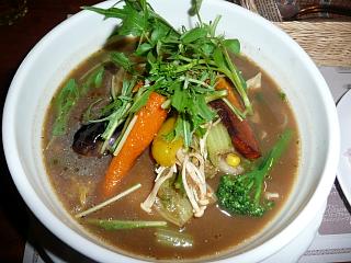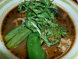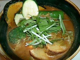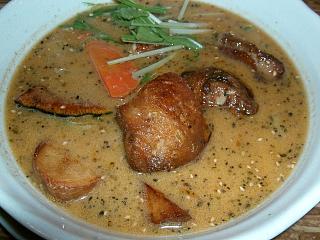 で、肝心のカレー。まず具だが道産野菜は高いのかとても「たっぷり」とは言えない量。21種類のスパイスを使用したというスープも非常にもの足りない。旨み系でもスパイス系でも無いっつーか、何か中途半端な印象。クーポン100円引でこの価格が救いだが、次にここへ来たら「石狩焼」の方を食べちゃうよな。