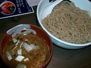 最初につけ汁を味見したときには、かなり強烈な「魚」印象が。魚ダメな人ならこの時点でアウトだよな。でも食べているうちに気にならなくなった。つけ汁は最後はスープ割りにしていただける。麺は極太・・・ちょっと細めのうどんってとこ。最近のラーメンはホントに色んなのがあるんだな。個性が強い分、万人受けするかは?だけど、個人的にはOK。次回はつけ麺ではなくラーメンの方をいただいてみよう。